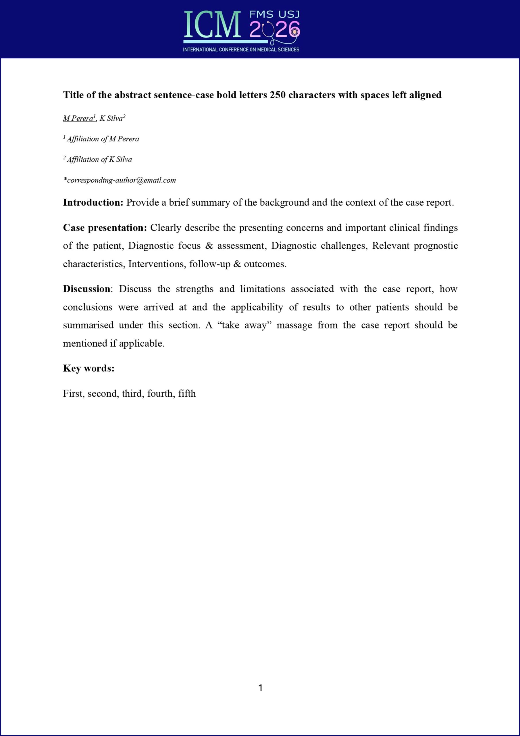 - The abstract should be submitted electronically as a Word document.